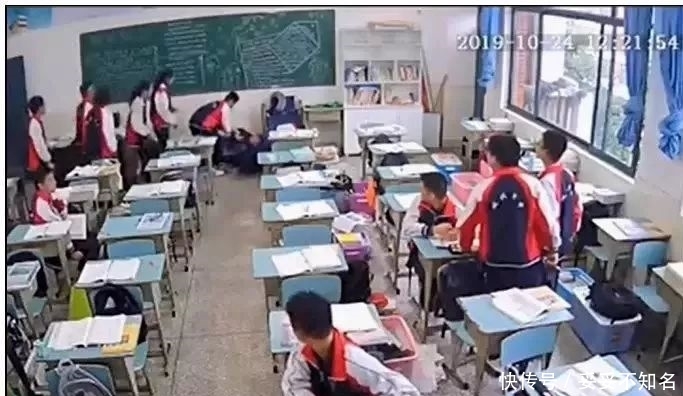 事发之处,学校出于对未成年学生的保护,只称老师“摔下楼梯”,后监控视频流出,该案才曝光。